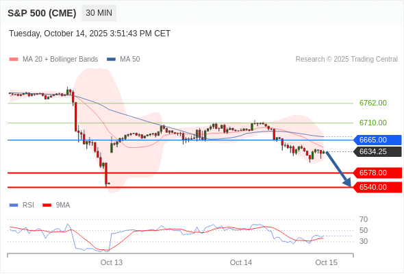 在 6665.00 之下,看跌,目标价位为 6578.00 ,然后为 6540.00 。