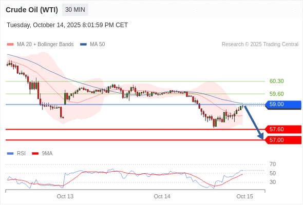 交易策略: 在 59.00 之下,看跌,目标价位为 57.60 ,然后为 57.00 。