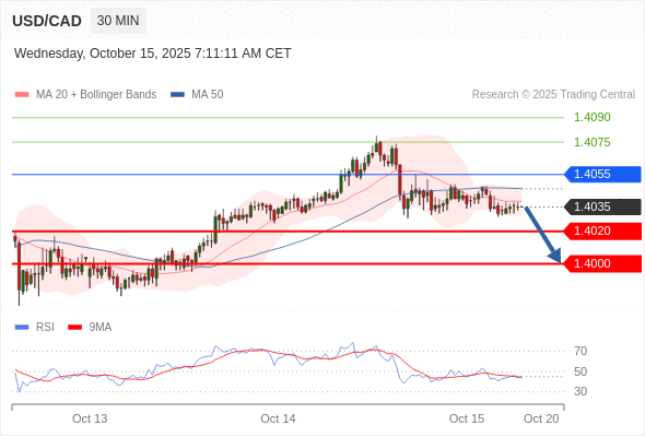 在 1.4055 之下,看跌,目标价位为 1.4020 ,然后为 1.4000 。