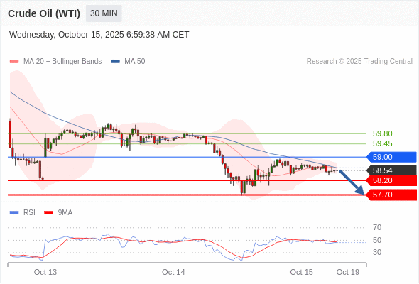 在 59.00 之下,看跌,目标价位为 58.20 ,然后为 57.70 。
