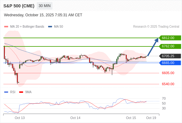 在 6665.00 之上,看涨,目标价位为 6762.00 ,然后为 6812.00 。