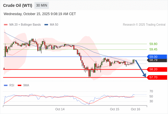 交易策略: 在 59.00 之下,看跌,目标价位为 58.20 ,然后为 57.70 。