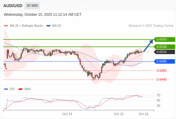 在 0.6490 之上,看涨,目标价位为 0.6530 ,然后为 0.6550 。