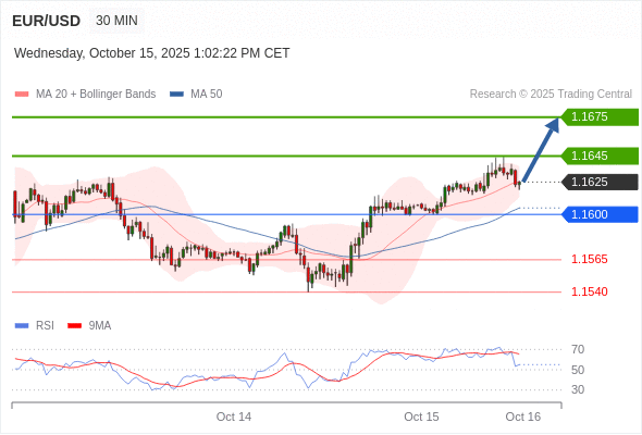 在 1.1590 之上,看涨,目标价位为 1.1645 ,然后为 1.1675 。