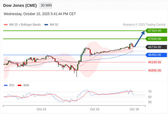 在 46450.00 之上,看涨,目标价位为 47030.00 ,然后为 47320.00 。