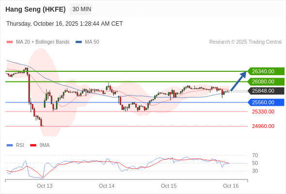 香港恒生指数期货 当日内: 超短线(当日内)支撑位在25560.00附近。