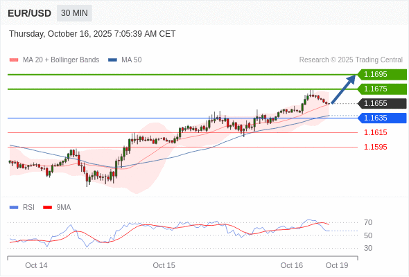 在 1.1635 之上,看涨,目标价位为 1.1675 ,然后为 1.1700 。