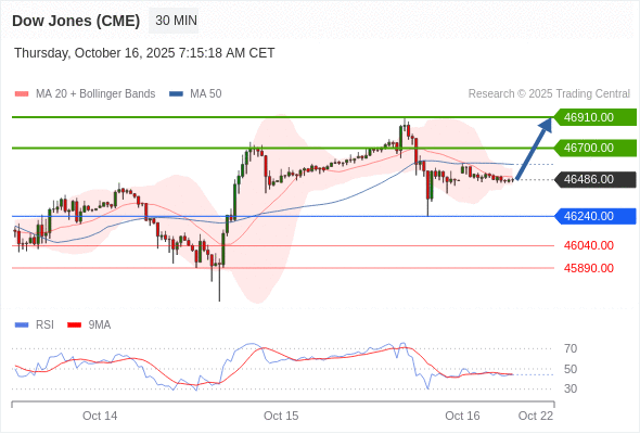 在 46240.00 之上,看涨,目标价位为 46700.00 ,然后为 46910.00 。