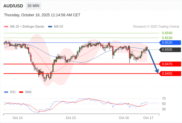 在 0.6520 之下,看跌,目标价位为 0.6475 ,然后为 0.6455 。