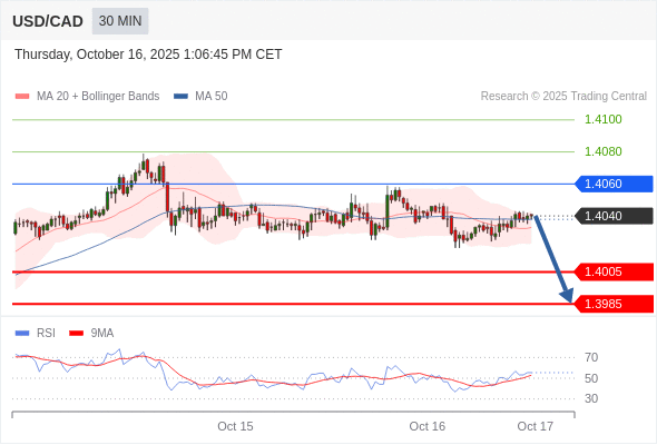 在 1.4060 之下,看跌,目标价位为 1.4005 ,然后为 1.3985 。