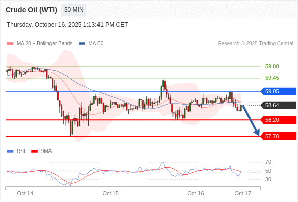 在 59.05 之下,看跌,目标价位为 58.20 ,然后为 57.70 。