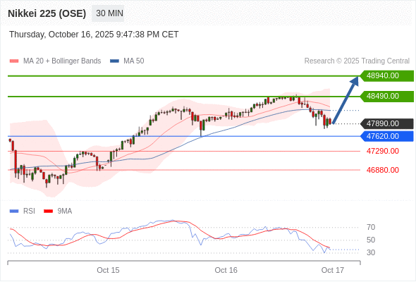 日经225股指期货 (OSE) 当日内: 超短线(当日内)支撑位在47620.00附近。