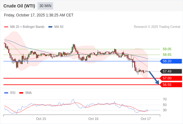 在 58.20 之下,看跌,目标价位为 57.00 ,然后为 56.55 。