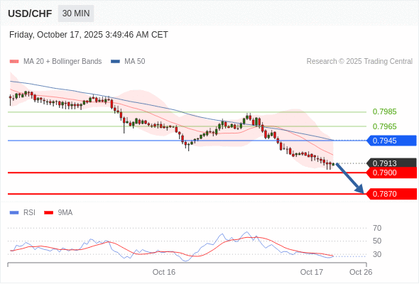 在 0.7945 之下,看跌,目标价位为 0.7900 ,然后为 0.7870 。