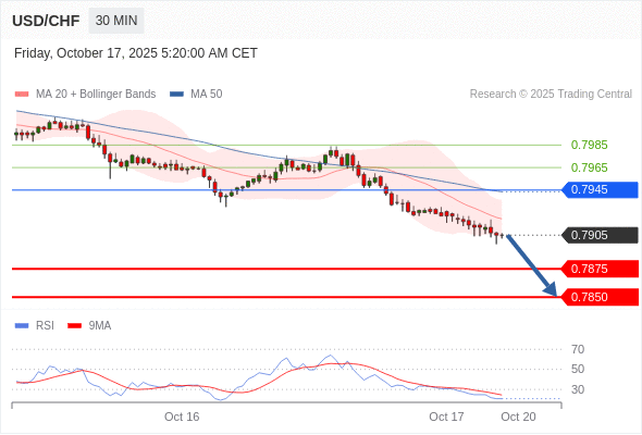 在 0.7945 之下,看跌,目标价位为 0.7875 ,然后为 0.7850 。
