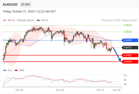 在 0.6490 之下,看跌,目标价位为 0.6455 ,然后为 0.6440 。