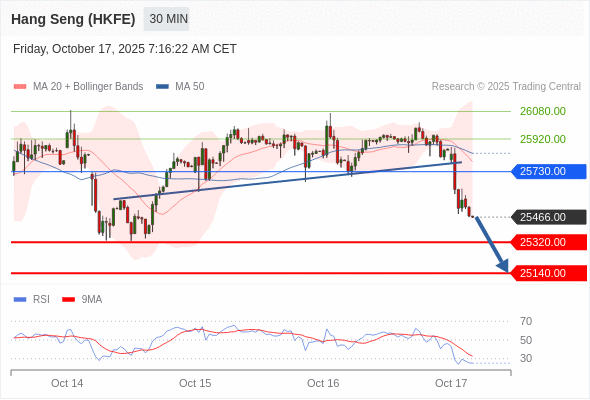 交易策略: 在 25730.00 之下,看跌,目标价位为 25320.00 ,然后为 25140.00 。