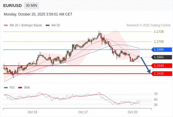 在 1.1680 之下,看跌,目标价位为 1.1640 ,然后为 1.1620 。