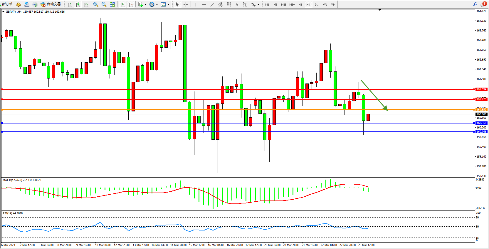 4小时图看:空头动力阶梯式震荡下行,短期跌势或将延续,市场整体处于空头不断下行中,MACD指标处于0轴线下侧徘徊,RSI指标处于50均衡线附近弱势整理;
