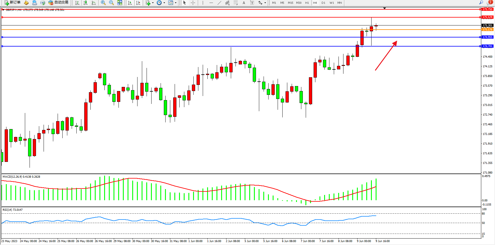 阻力位:175.529 175.750