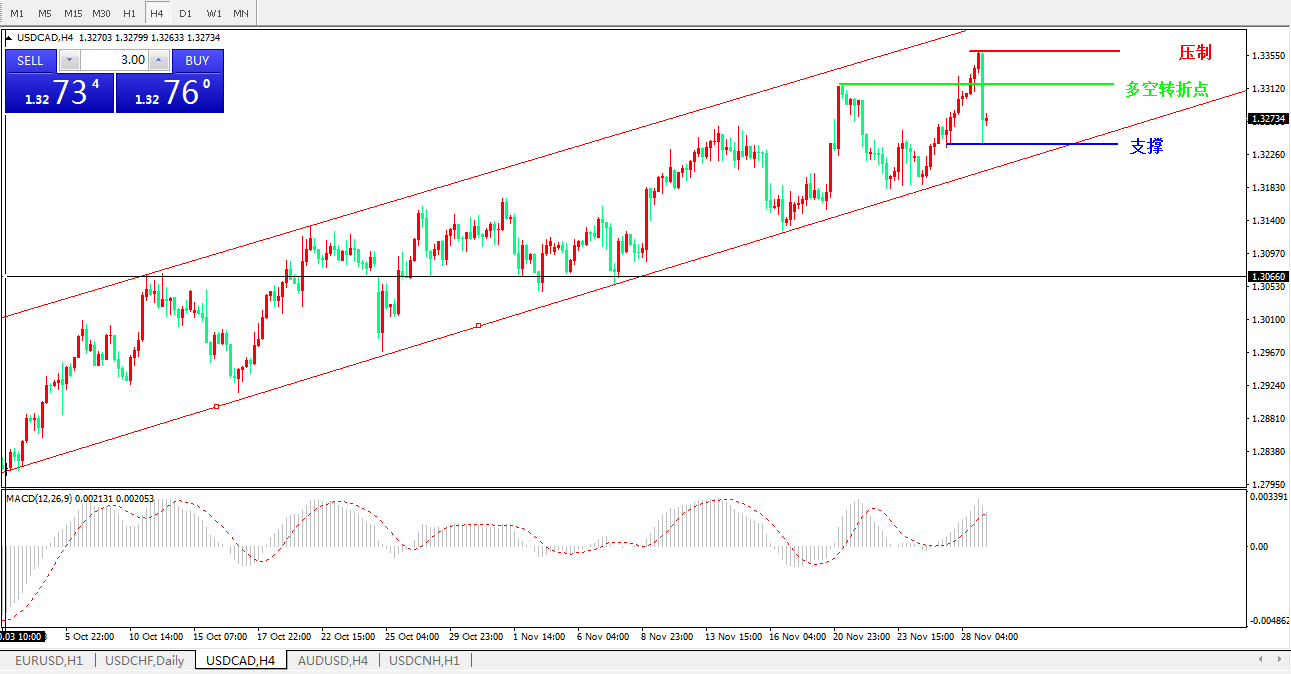美元兑加元USDCAD4小时图: