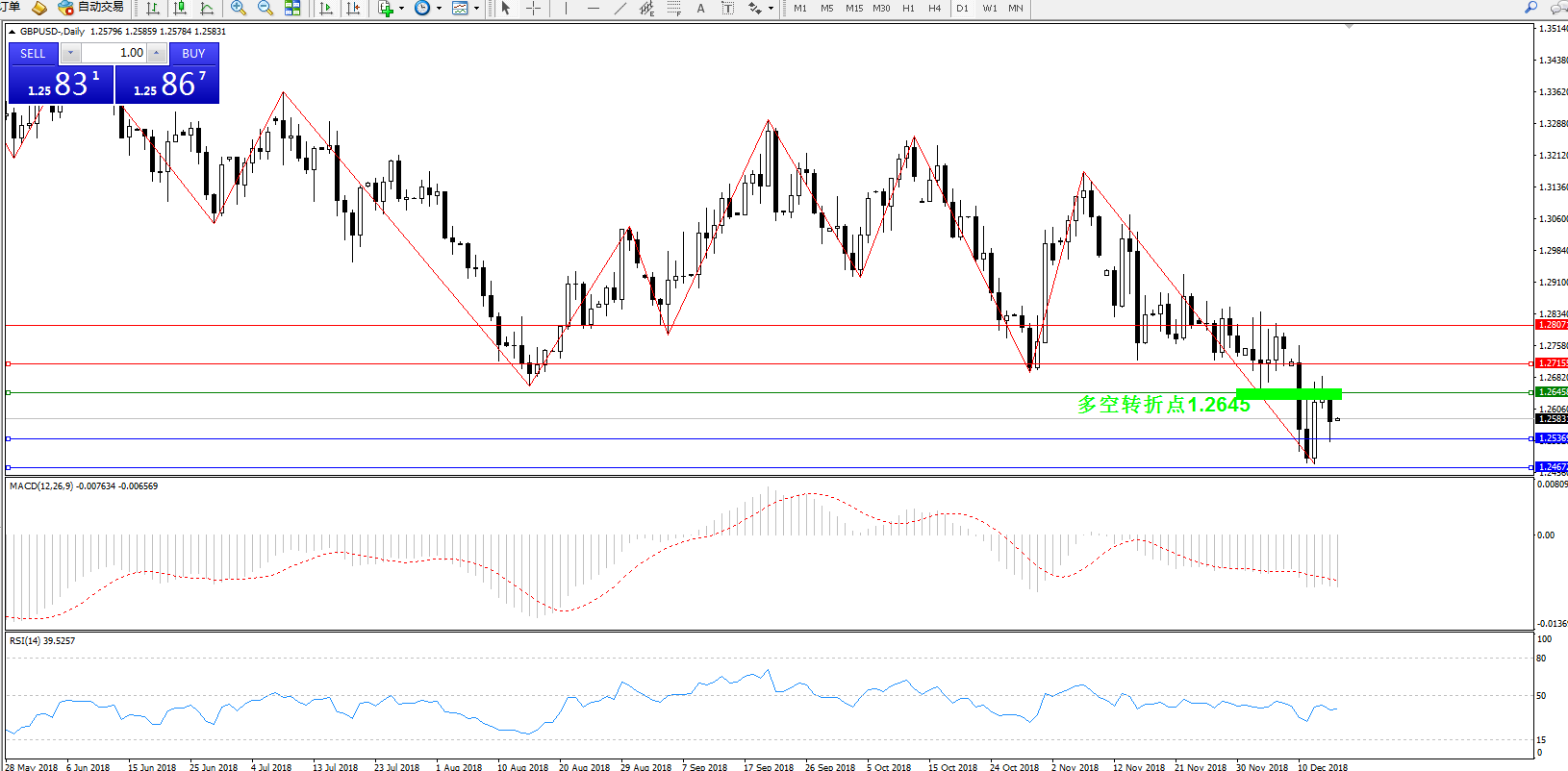 备选策略:1.2645下方看跌,目标1.2536、1.2467