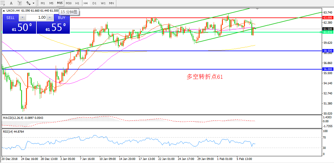 交易策略:在61.00之下看跌,目标59.00 57.00