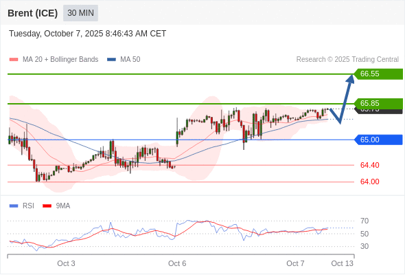 在 65.00 之上,看涨,目标价位为 65.85 ,然后为 66.55 。