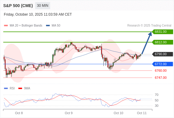 在 6772.00 之上,看涨,目标价位为 6812.00 ,然后为 6831.00 。