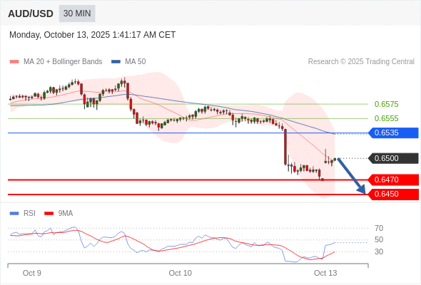 交易策略: 在 0.6535 之下,看跌,目标价位为 0.6470 ,然后为 0.6450 。