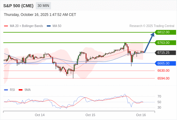 在 6665.00 之上,看涨,目标价位为 6763.00 ,然后为 6812.00 。