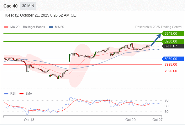 在 8060.00 之上,看涨,目标价位为 8260.00 ,然后为 8349.00 。