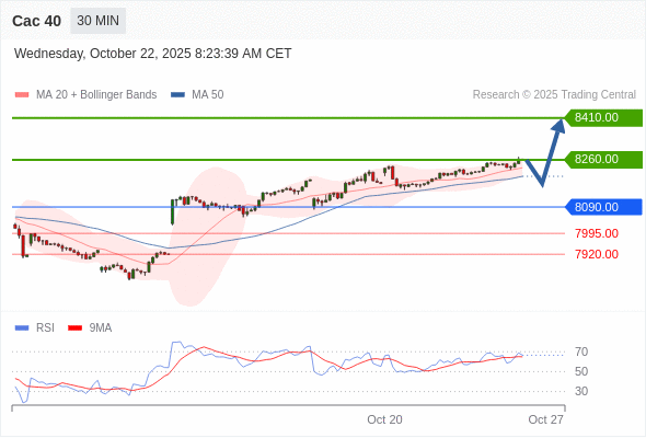 Cac 40 当日内: 上升趋势。