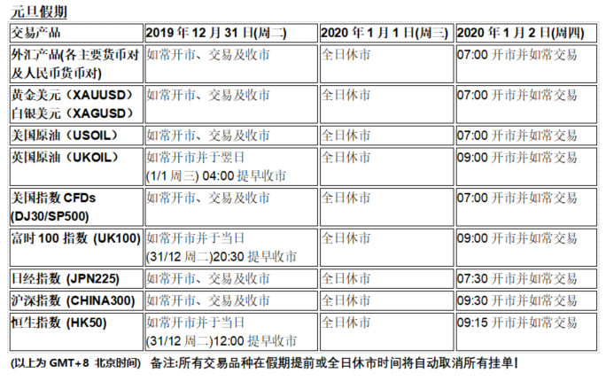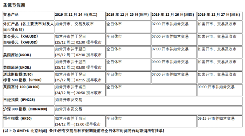 备注:所有交易品种在假期提前或全日休市时间将自动取消所有挂单!