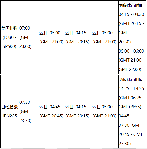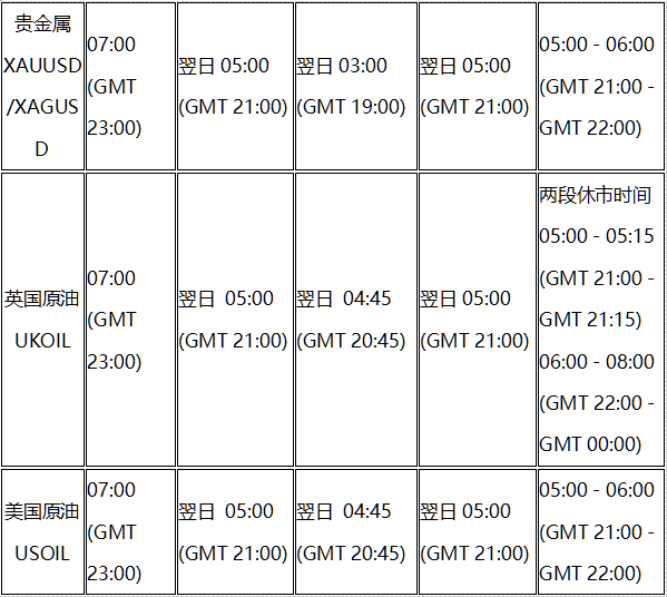 因应美国时区于2022年3月13日(周日)与欧洲时区于2022年3月27日(周日)分别开始转为夏令时间, 本公司各产品交易时间将以下表安排调整为夏令时间,敬请留意。