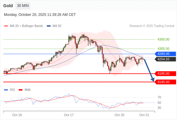 黄金现货 当日内: 短期关键阻力位在4280.00。